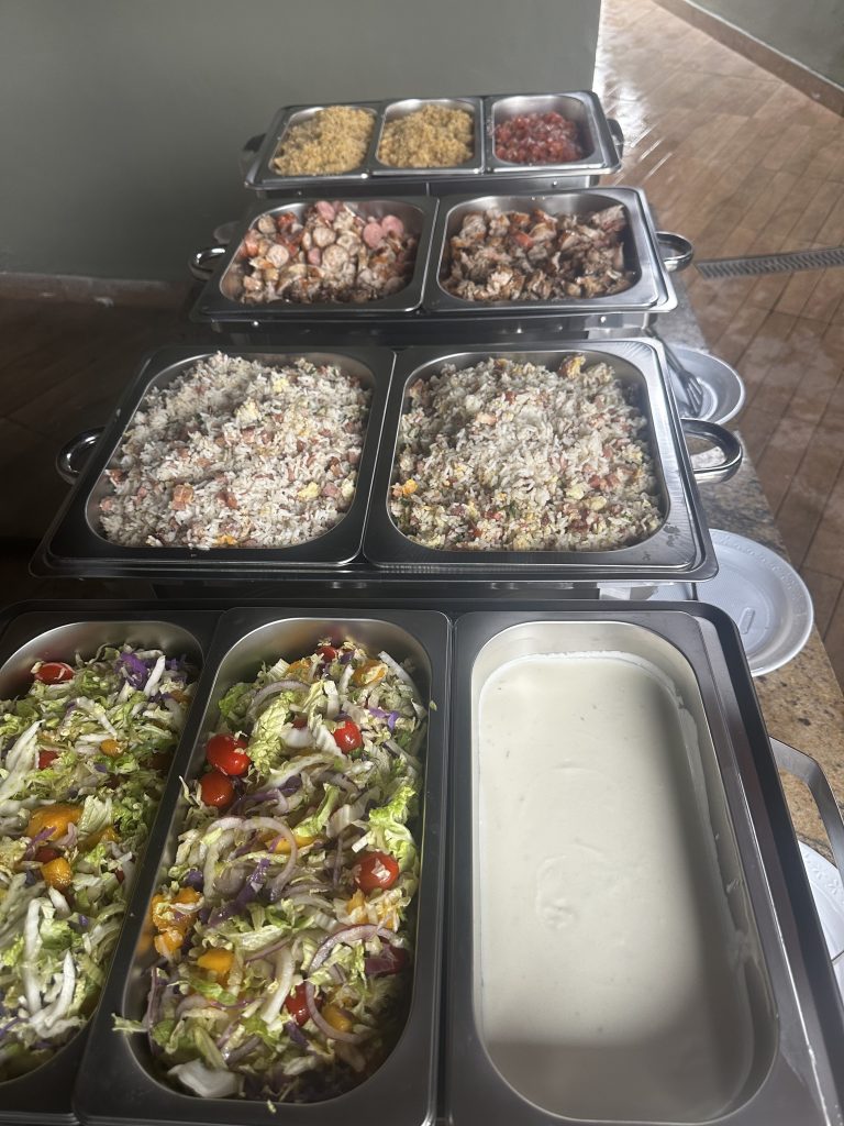 Oferecemos opções de carnes variadas, como picanha, alcatra, maminha, fraldinha, entre outras, além de acompanhamentos como arroz, feijão, saladas e sobremesas. Temos também opções para vegetarianos e veganos.